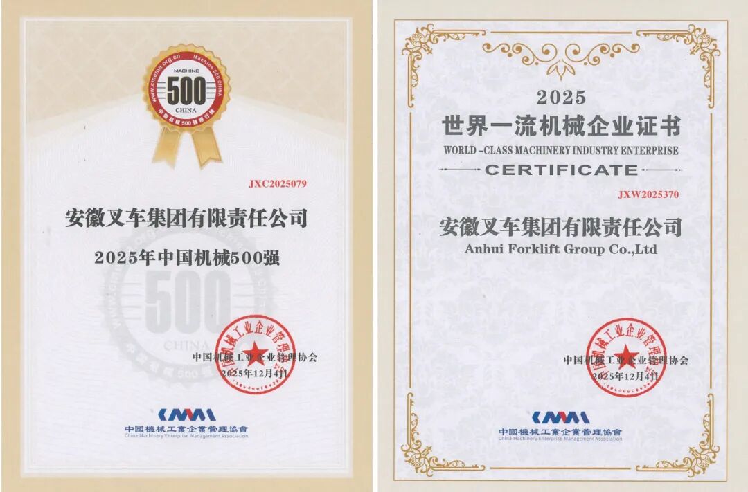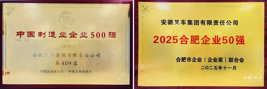 近期,国家及省市各级企业联合会、企业家协会陆续发布年度企业榜单。凭借稳健的经营业绩与卓越的实践表现,安徽叉车集团成功入选“2025中国制造业企业500强”、“2025安徽企业100强”、“2025安徽制造业100强”、“2025安徽百强企业战略新兴业务营收30强”及“合肥市50强”等多项权威榜单。尤为值得一提的是,公司今年首次跻身“中国制造业企业500强”,排名第489位;同时,在“安徽企业100强”和“合肥市50强”中的排名也实现稳步提升,分别较“十三五”末提升7位和5位。多项荣誉的取得,是公司高质量发展的生动体现。